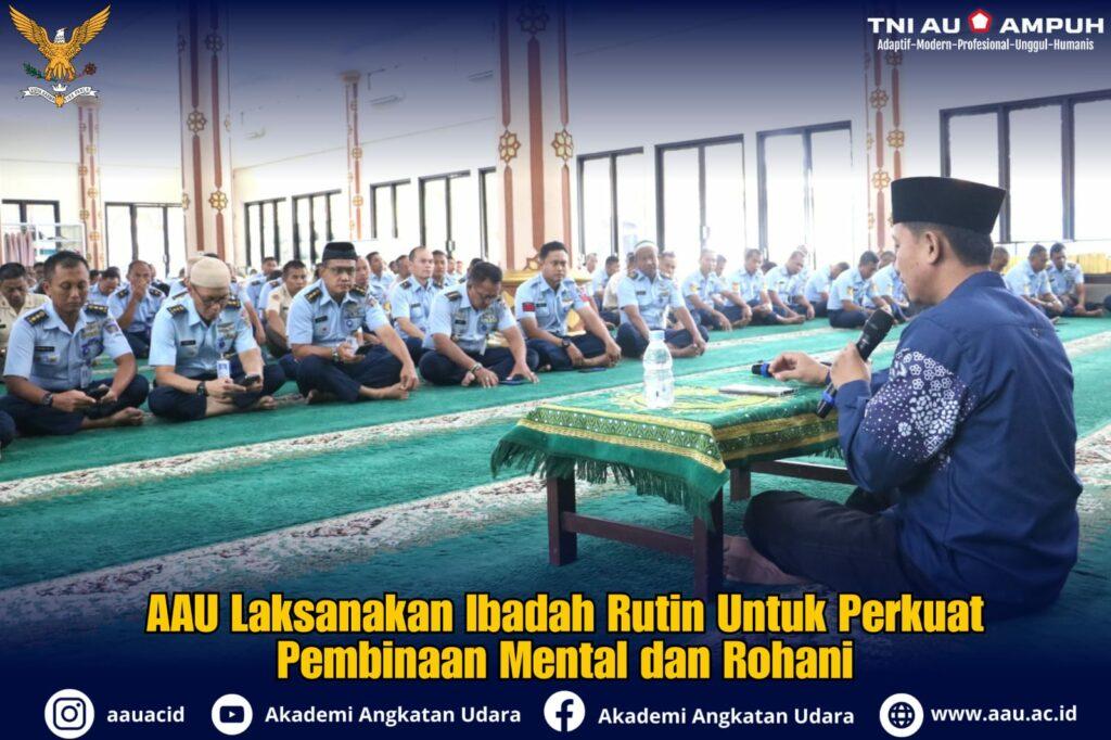 Yogyakarta (Pen-AAU). Civitas Akademi Angkatan Udara (AAU) kembali menyelenggarakan kegiatan ibadah rutin pada Rabu, (26/11/2026) sebagai upaya berkelanjutan dalam meningkatkan pembinaan mental dan rohani seluruh personel di lingkungan AAU.