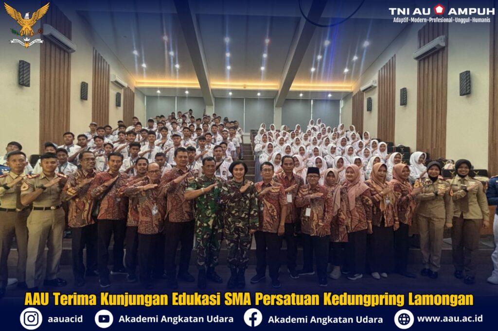 Yogyakarta (Pen-AAU). Akademi Angkatan Udara (AAU) menerima kunjungan edukasi dari SMA Persatuan Kedungpring, Lamongan, Jawa Timur, yang berlangsung di Ruang 3 T (Tanggon, Tanggap dan Trengginas) AAU, Rabu (22/4/2026).