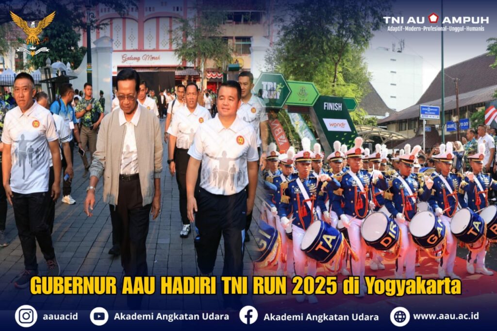 Gubernur Akademi Angkatan Udara (AAU) Marsekal Muda TNI Donald Kasenda, S.T., S.I.P., M.M., di dampingi Ibu Asuh Taruna AAU Ny. Meidy Donald Kasenda menghadiri kegiatan TNI Run 2025 yang digelar di kawasan Jalan Malioboro, Yogyakarta, Minggu (19/10/2025).