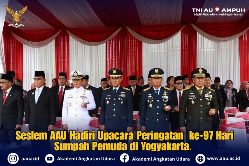 Sekretaris Lembaga Akademi Angkatan Udara (AAU), Marsekal Pertama TNI Harry Sofian E., S.I.P., M.H., menghadiri Upacara Peringatan Hari Sumpah Pemuda ke-97 tingkat Provinsi Daerah Istimewa Yogyakarta (DIY) yang digelar di Lapangan Mandala Krida, Yogyakarta, Selasa (28/10/2025).