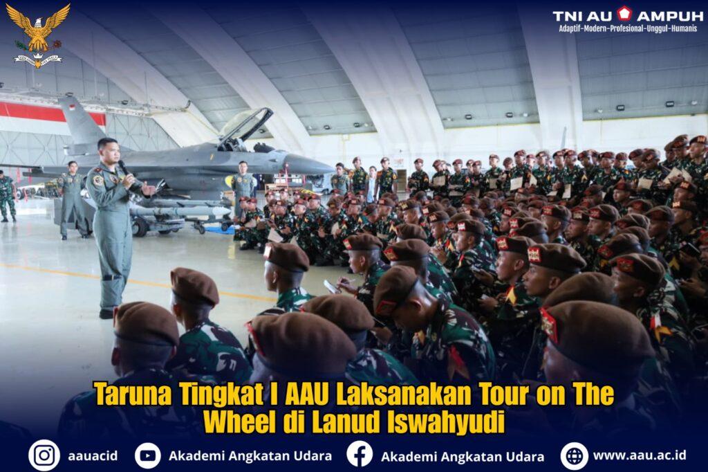 Sebanyak 210 Taruna Tingkat I Akademi Angkatan Udara (AAU) Werving 2025 melaksanakan kegiatan Tour on The Wheel di Lanud Iswahyudi Madiun, Senin (8/12/2025). Kegiatan ini merupakan tahap lanjutan setelah penyelesaian Integrasi Resimen Chandradimuka Magelang dan menjadi sarana pengenalan awal kehidupan pendidikan serta kedinasan di lingkungan TNI Angkatan Udara.
