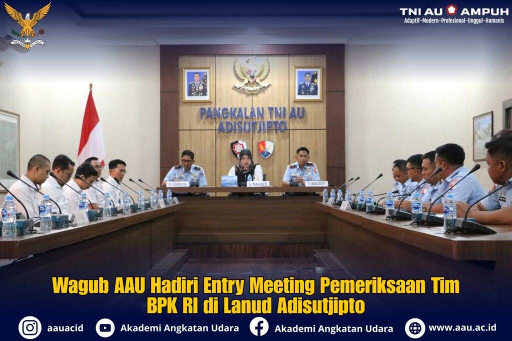 Yogyakarta. (Pen-AAU). Wakil Gubernur Akademi Angkatan Udara (Wagub AAU) Marsma TNI Bonang Bayuaji G, S.E., M.M., CHRMP., menghadiri kegiatan Entry Meeting Pemeriksaan dari Tim Badan Pemeriksa Keuangan (BPK) Republik Indonesia atas Laporan Keuangan (LK) UO TNI AU tahun 2025, bertempat ruang rapat Mako Lanud Adisutjipto, Senin (1/12/2025).